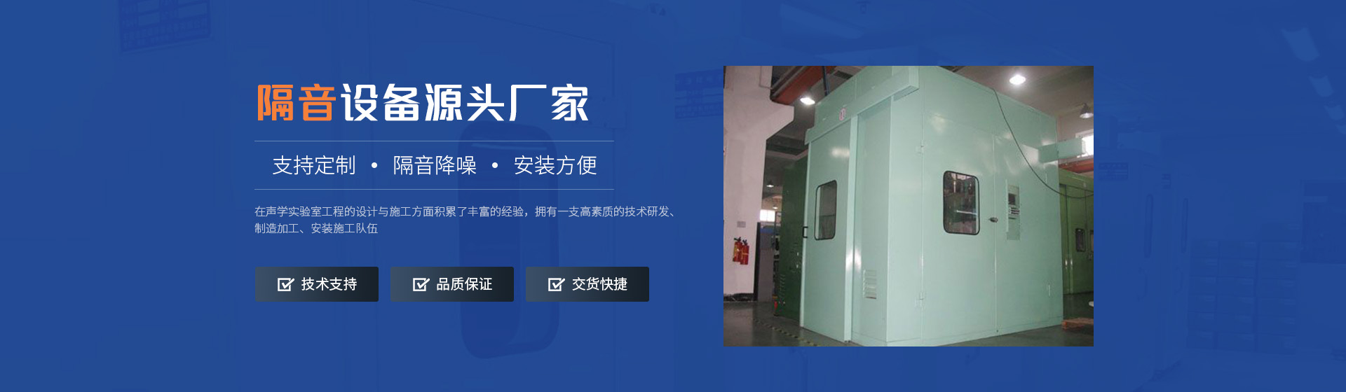 生產(chǎn)銷售銷售各種隔音房,隔音室,靜音室,沖床隔音房,隔音罩,消聲百葉,吸音板,吸聲墻面,空間吸聲體,公路隔音屏障等等